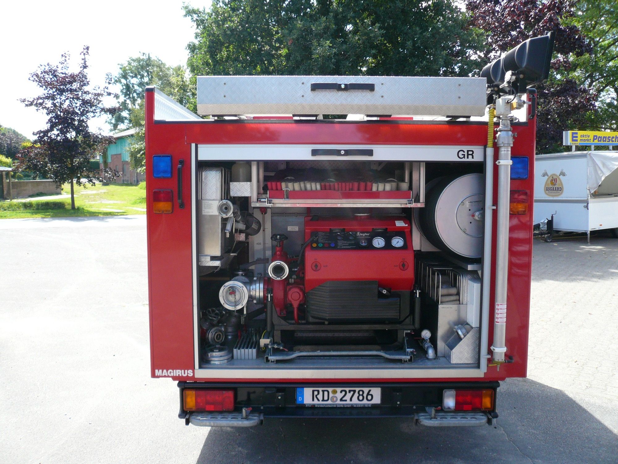 Damit hat es in einem Einsatz durch die heckseitig eingeschobene Tragkraftspritze die Aufgabe der Wasserversorgung.